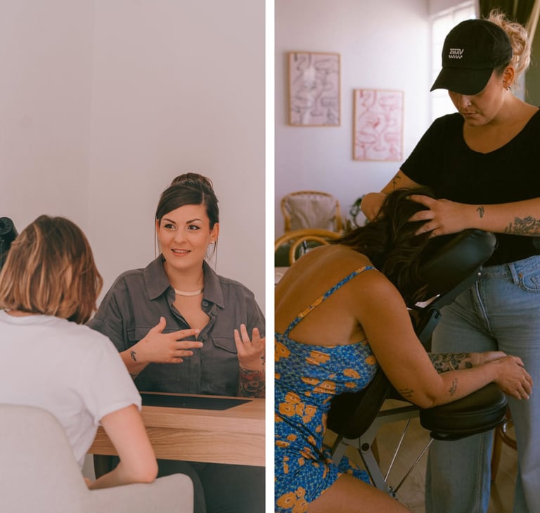 Massage relaxant ET énergisant conçu pour le contexte actif, professionnel.